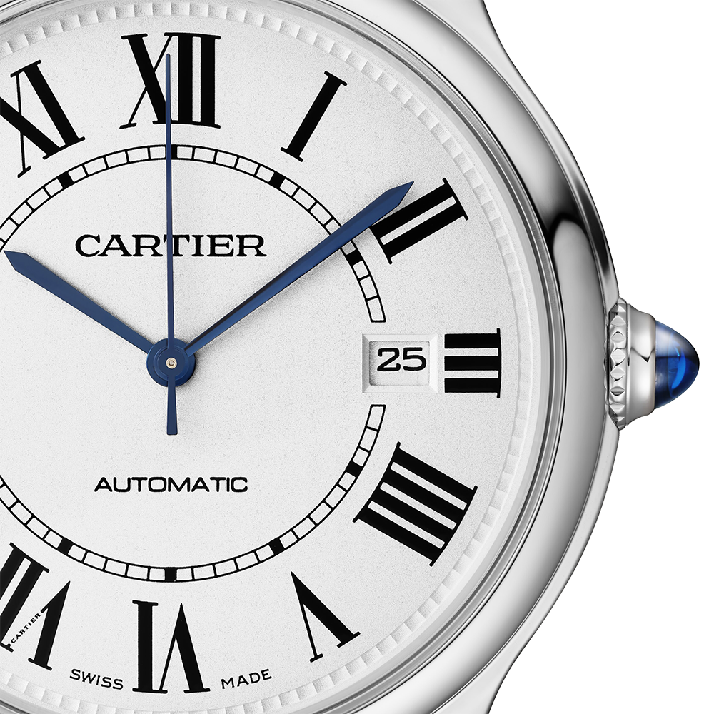 At once a watch and jewel, the Panthère de Cartier timepiece is one of the most distinctive Cartier designs. Born in the 80s and more contemporary than ever, it is a true style icon for women who wish never to go unnoticed. This medium model houses a quartz movement and features a silvered dial with blued-steel, sword-shaped hands. The watch is completed on a stainless steel bracelet.