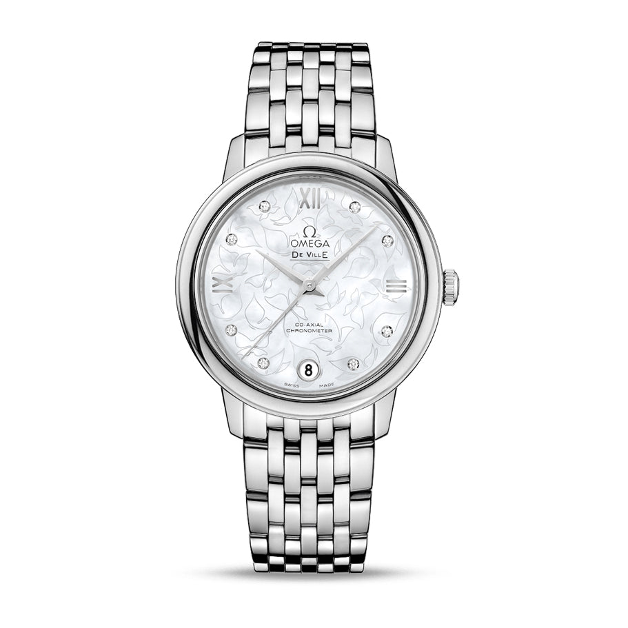 The 32.7 mm stainless steel case is presented on a matching bracelet. At the heart of this De Ville Prestige "Butterfly" is the Co-Axial calibre 2500.